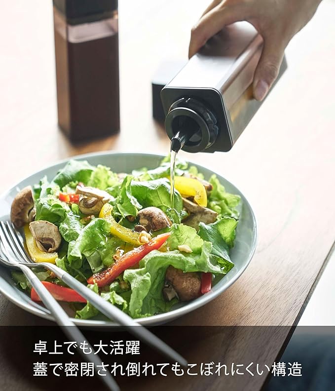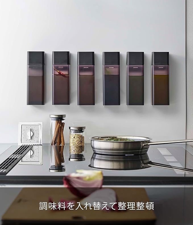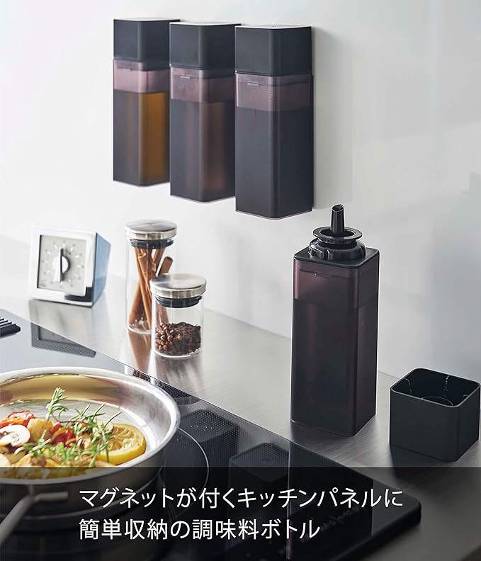 マグネットが付くキッチンパネルに簡単収納できる調味料ボトル。調味料を入れ替えて整理整頓できます。卓上でも調理時でも大活躍。キャップは密閉されていて倒れてもこぼれにくい構造。蓋は軽くひねるだけの簡単オープン。閉めるときはワンプッシュ。パーツは全て分解して洗えます。