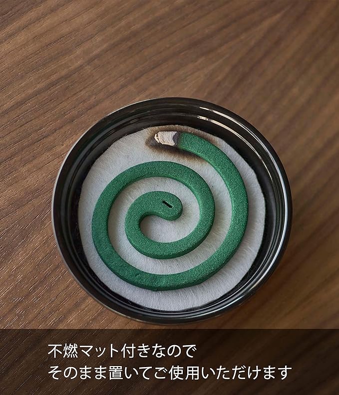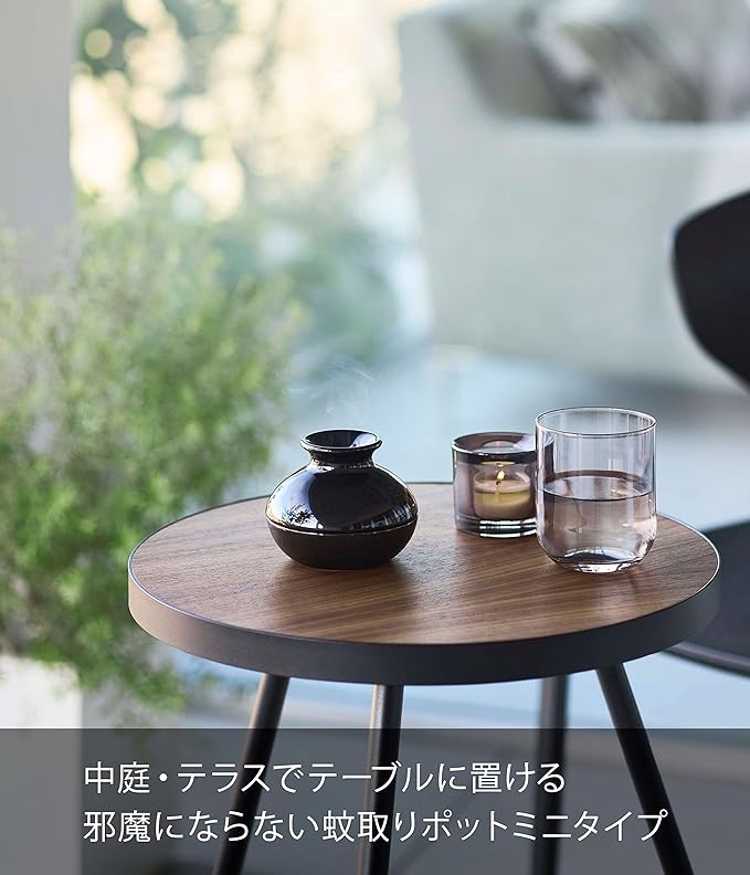 中庭・テラスでテーブルに置けて邪魔にならない蚊取りポットミニタイプ。3時間タイプの蚊取り線香専用で、不燃マット付きだからそのまま置いて使用できます。