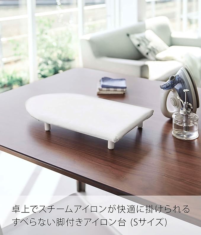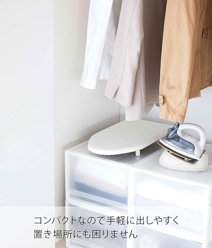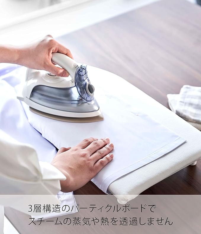 ちょっとしたアイロン掛けに便利。 大きいアイロン台はスペースが必要だったり、出すのが億劫だったり。でも、ちょっとしたハンカチやシャツのアイロンが必要という方におすすめなtowerの『舟型アイロン台 S』のご紹介です。こちらのアイロン台には脚付きで卓上に置いて立ったり、座った状態でもアイロンがけができます。舟型は衣類の前身頃・後身頃をアイロンしやすい形状です。大人用のシャツやスラックスからハンカチなどの小物類にもおすすめです。蒸気や熱を通過させない3層構造のパーティクルボードを採用しているため、スチームアイロンを使用してもテーブルを傷めません。インテリアになじむ2色展開 カラーバリエーションは清潔感あり気分を明るくしてくれる「ホワイト」と、大人の落ちつきをイメージさせる「ブラック」の2色が展開されています。お好みに合わせてお選びください。使用頻度が少ない方にもおすすめなSサイズ幅46cm×奥行26cmのコンパクトな船型タイプです。たまに必要なシャツやブラウスのアイロンも舟型なら肩部分もしっかりとフィットします。ハンカチやお子様のネーム付にも便利なサイズで、このコンパクトさなら出し入れも億劫になりません。滑りにくくがたつかない脚 脚はシリコーン製で接地面が滑りにくい丸型になっているためがたつきにくく、安定感を感じながら快適にアイロン掛けできます。テーブルや床などお好みの上に置いても、熱で傷めにくいのが魅力。収納場所に困らないスリム設計 滑りにくくテーブルを傷めにくい機能的な脚が付いていますが、高さはわずか6cmのスリム設計となっています。使わない時はクローゼットや押し入れなどの隙間に入れて収納できます。