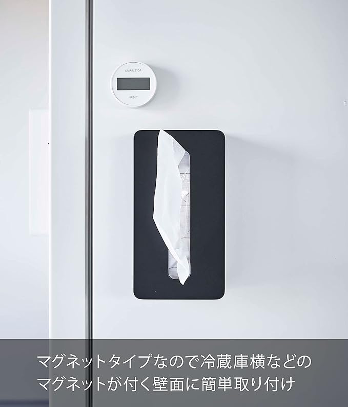 tower マグネット コンパクト ティッシュケース ハイタイプ ブラック ソフトパックティッシュ専用 ティッシュカバー
