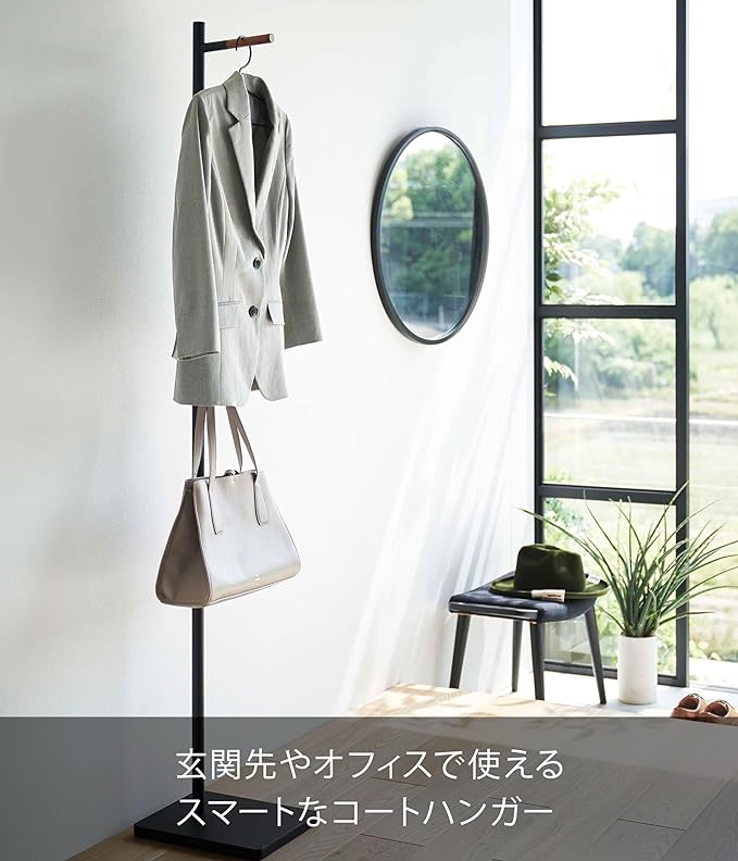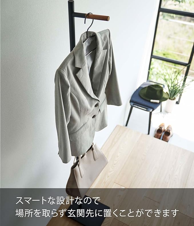 玄関先やオフィスで使えるスマートなコートハンガー。天然木のフックがアクセントのお洒落なコートハンガー。スマートな設計なのであまり場所を取らず、玄関先に置くことが出来ます。
