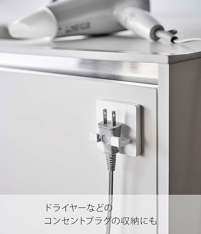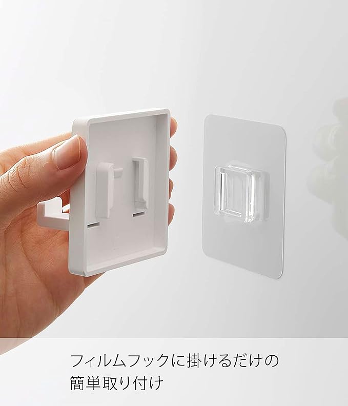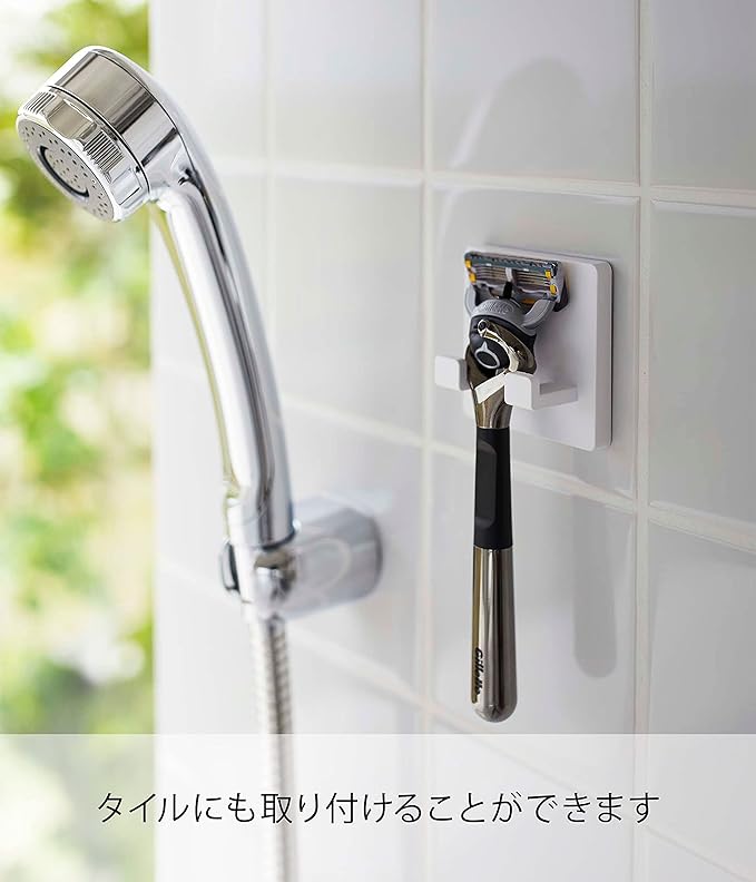 フィルムフックで好きな位置に簡単取り付けのシェーバーホルダー。宙に浮くからシェーバーがぬめらず衛生的。タイルに取り付け可能。ドライヤーなどのコンセントプラグの収納にも。ヘアゴムなどの小物掛けとしても。光沢のある壁面にフィルムフックで簡単取り付け。