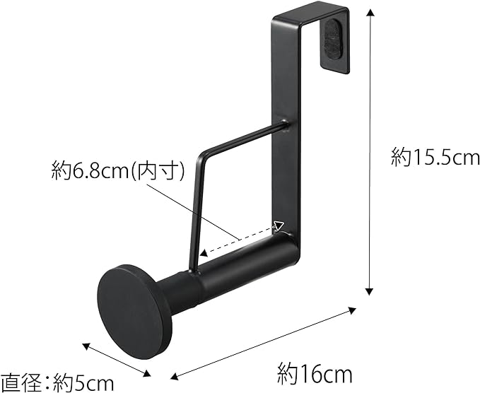 smart 滑り止め付き ドアハンガー ロング ブラック 先端がシリコーン製 帽子が落ちにくい