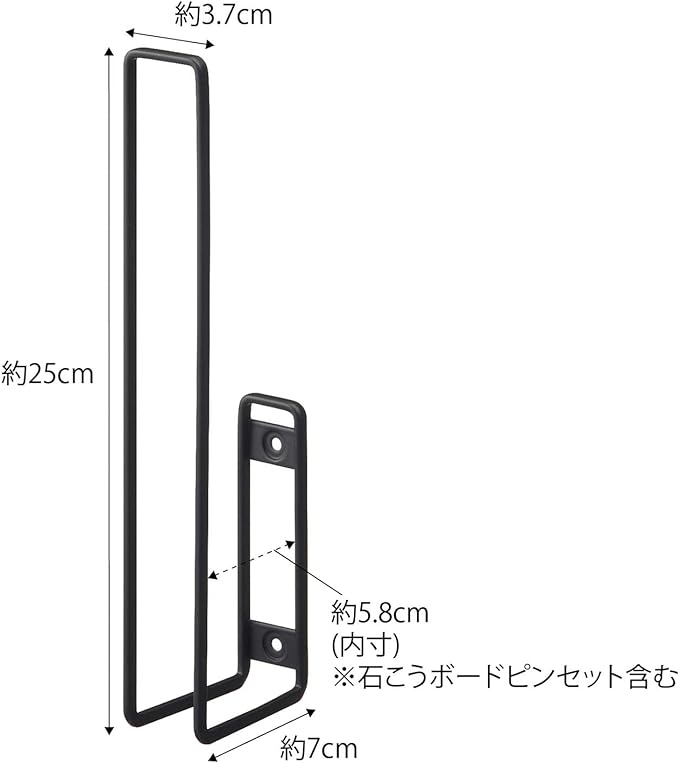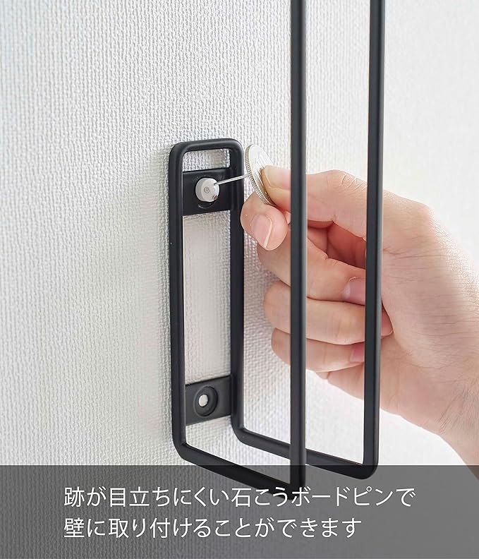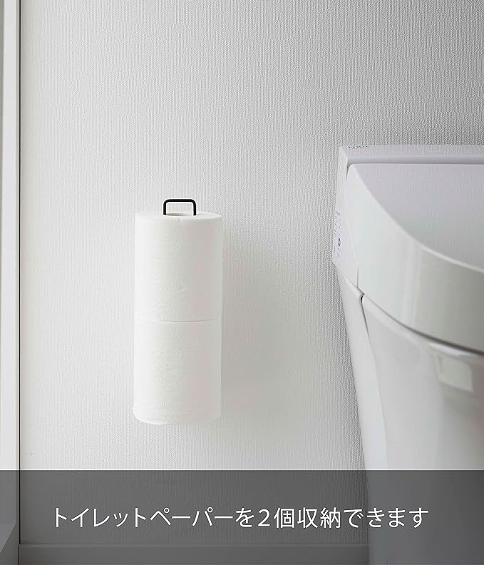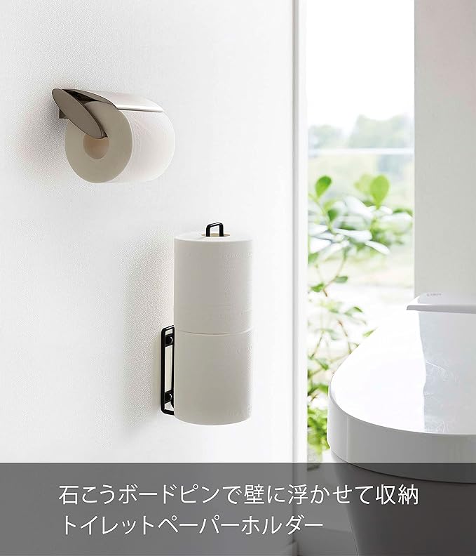 石こうボードピンで壁に浮かせて設置できるトイレットペーパーホルダー。トイレットペーパーを差し込むだけの簡単収納。トイレットペーパーを2個、浮かせて収納できます。ホルダー部に幅があるので、トイレットペーパーをしっかりとホールドしてくれます。壁の穴が目立たない石こうボードピンで壁に取り付けることができます。浮かせて収納できるので、床のお手入れも簡単です。