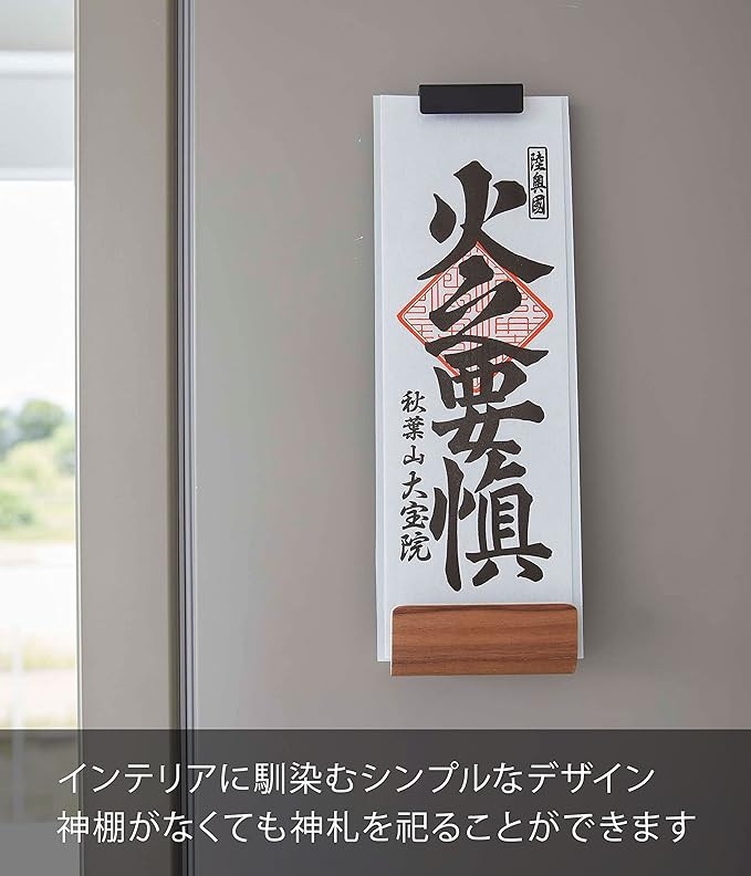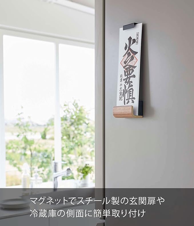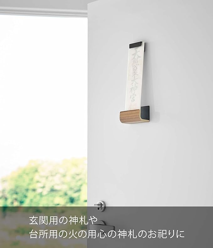 神棚がないご家庭に。マグネット神札ホルダー 神棚がないお家やマンションに住んでいる方にもおすすめな、マグネットタイプの神札ホルダーです。スチール製のドアや冷蔵庫などにピタッと付けられるので、壁に穴を開けたくない方も安心してお使いいただけます。お好みに合わせて選べる、2つのカラーバリエーション カラーは、シックな木目との組み合わせが上品なブラウンと、やわらかい印象のナチュラルをご用意しました。RINシリーズならではの木目との組み合わせは、和室でも洋室でも合わせやすく設置場所を選びません。神棚がない玄関や台所にも 玄関用の神札や、台所用の火の用心の神札を祀る際でも、マグネット神札ホルダーなら玄関ドアや冷蔵庫横などにつければ簡単に設置ができます。また、神札を壁から浮かせて祀ることができて、冷蔵庫や玄関扉の汚れが付きません。上下2つのパーツで高さ調節が可能 こちらの神札ホルダーは上下2つのパーツに分かれているので、お札のサイズに合わせて高さ調節ができます。こちらはシングルタイプで一体の神札をお祀りいただけます。複数の神札を祀るワイドタイプも RINシリーズの『マグネット神札ホルダー』には複数の神札や破魔矢がおけるタイプもございます。それぞれの場所に合わせてサイズ違いを設置も可能です。※こちらのページは『マグネット神札ホルダー シングル』となります。