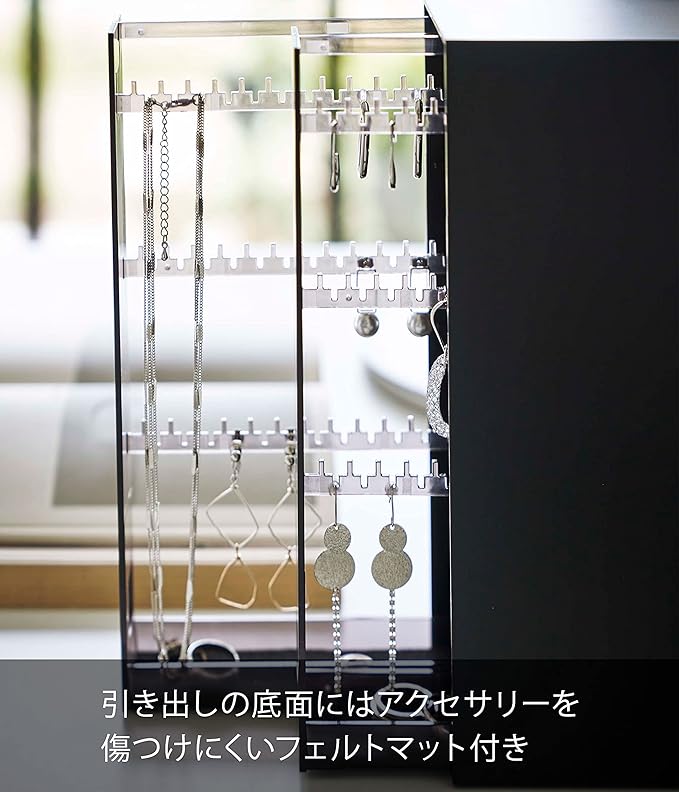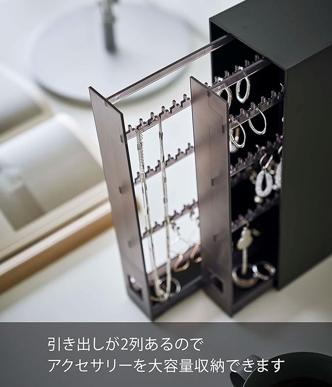 tower ネックレス&ピアス 収納ケース ブラック 大容量 アクセサリー収納 引き出し