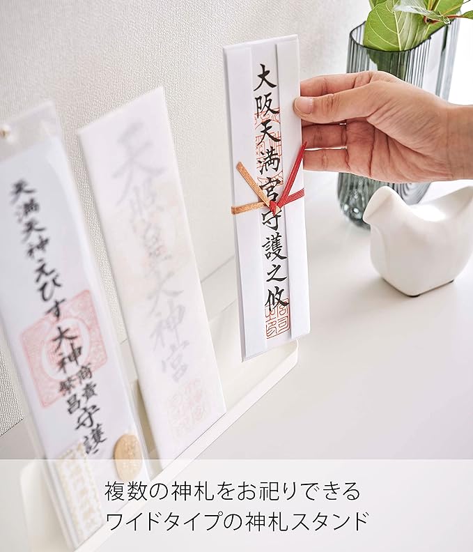 神札の定位置に。シンプルなのでお部屋になじむ置き型神札スタンド。神棚がないご家庭で置き場所に困っていた神札を立てて祀ることができる神札スタンドです。複数の神札を祀ることができるワイドタイプ。