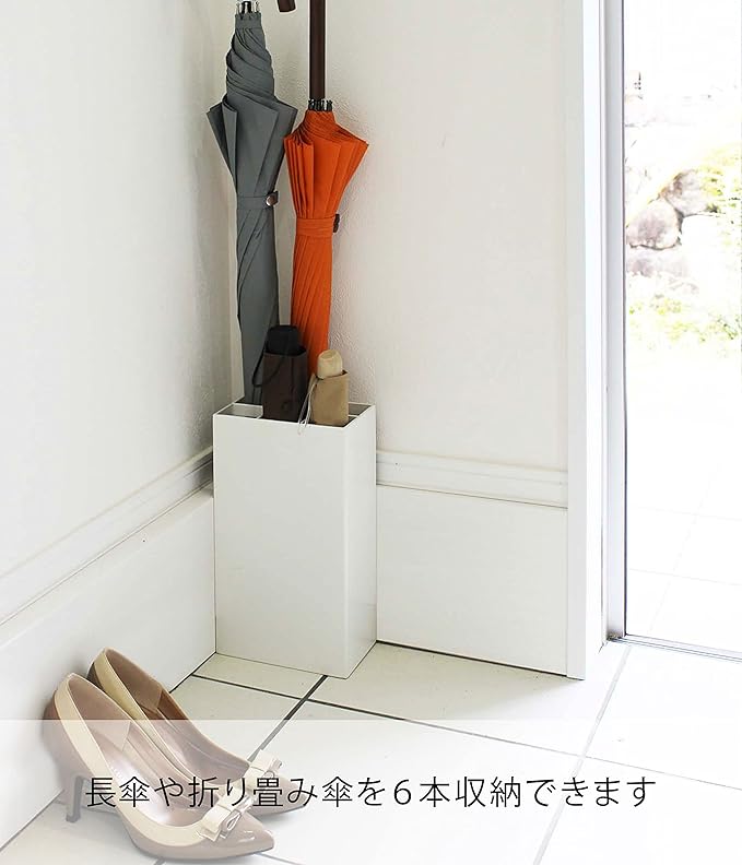smart かさたて 6本用 ホワイト 傘立て 角型 折り畳み傘も収納可能