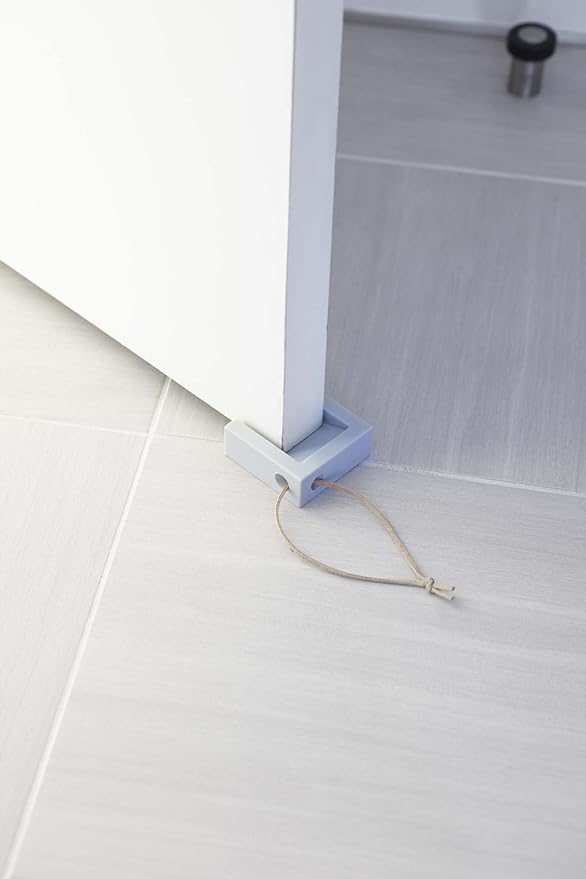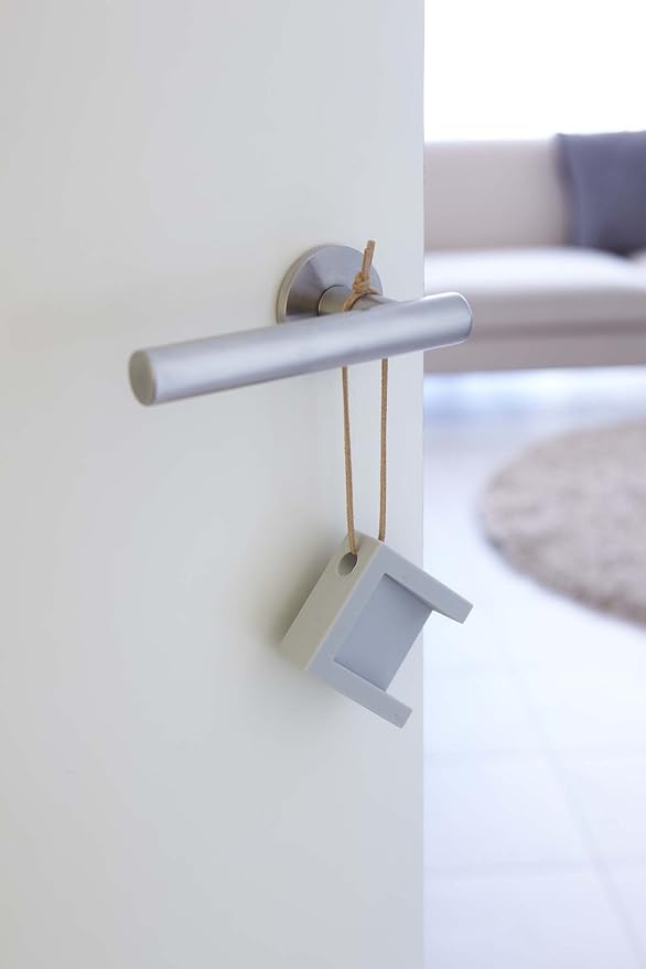 ドアの横から差し込むタイプの新感覚ドアストッパーです。ドアを左右から挟み込むため、ドアをがっちりキープします。ひも付きなので使わない時はドアノブに引っ掛けて収納可能。
