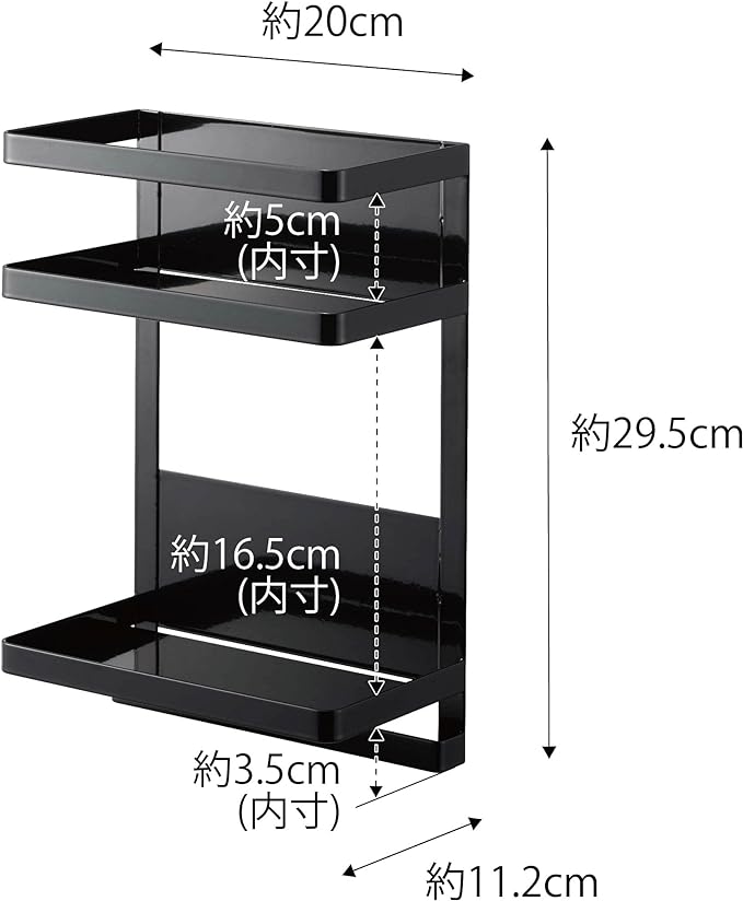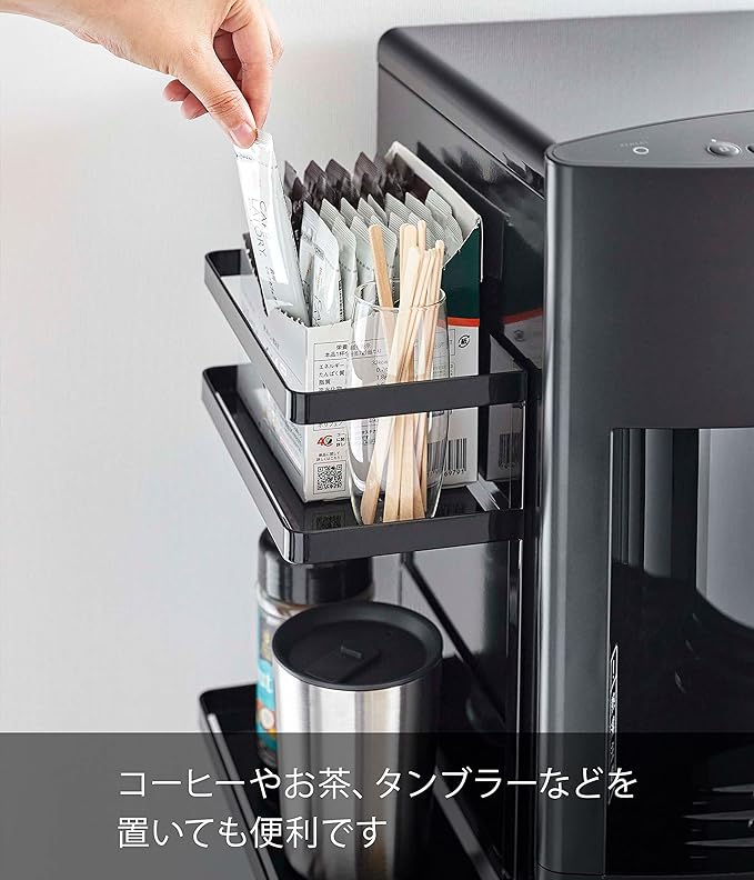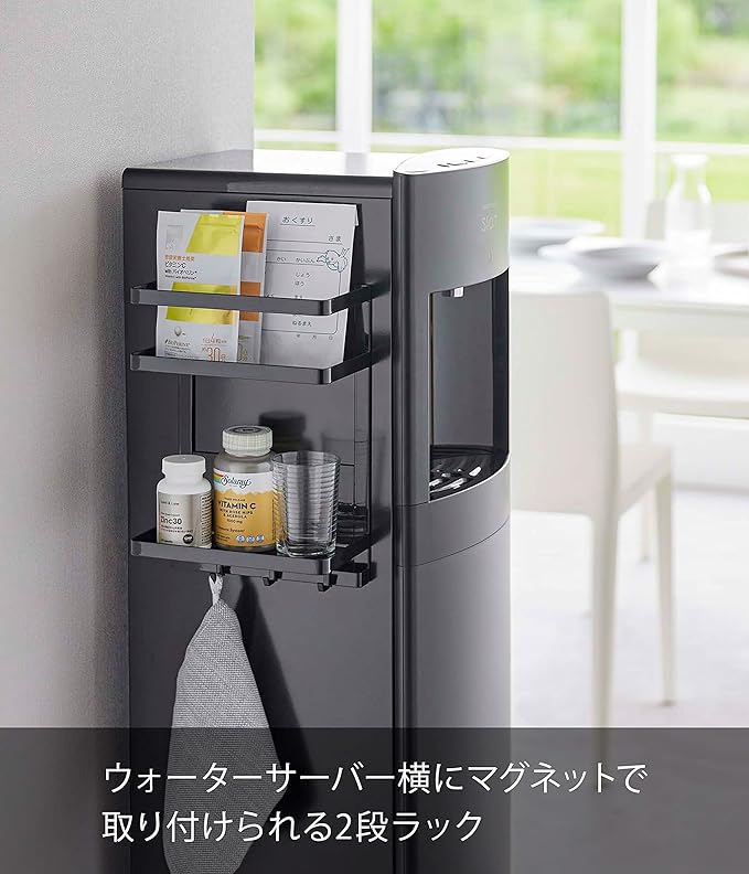 tower ウォーターサーバー横 マグネットラック 2段 ブラック お茶 コーヒー 調味料 ラック まとめて収納