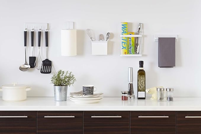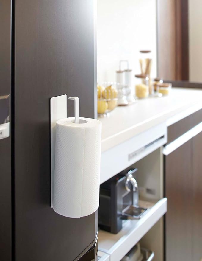 冷蔵庫横などにマグネットで簡単取り付けのキッチンペーパーホルダー。横向きに使えばタオルも掛けられます。
