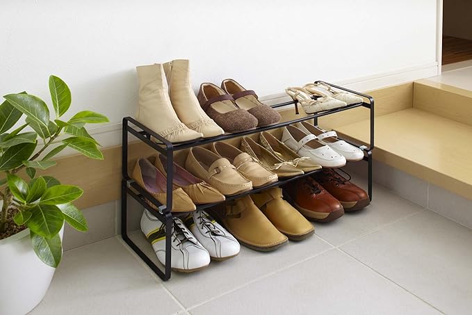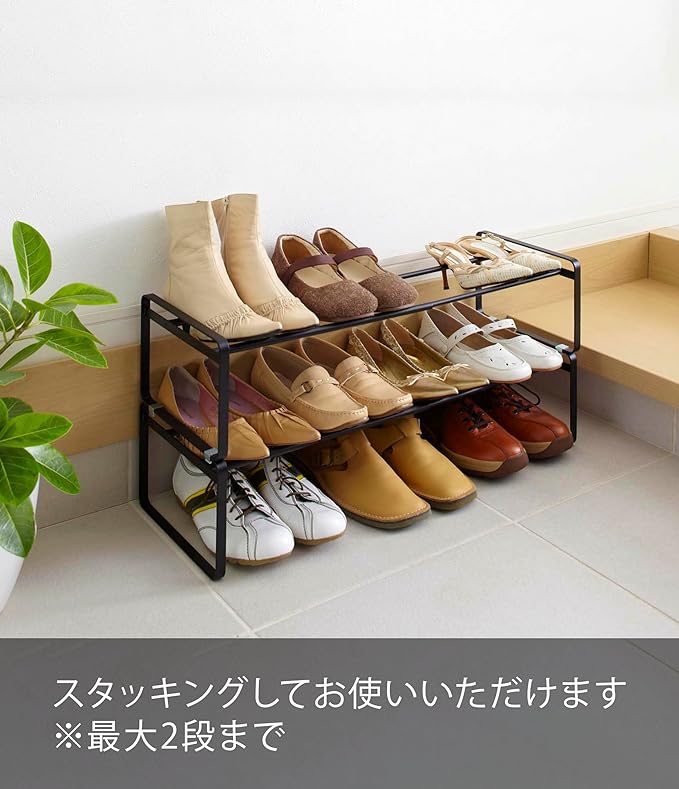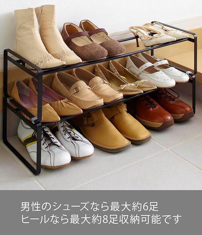 frame 伸縮 シューズラック ブラック フレーム 下駄箱下にも収まる 靴収納