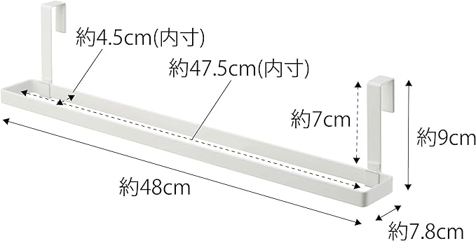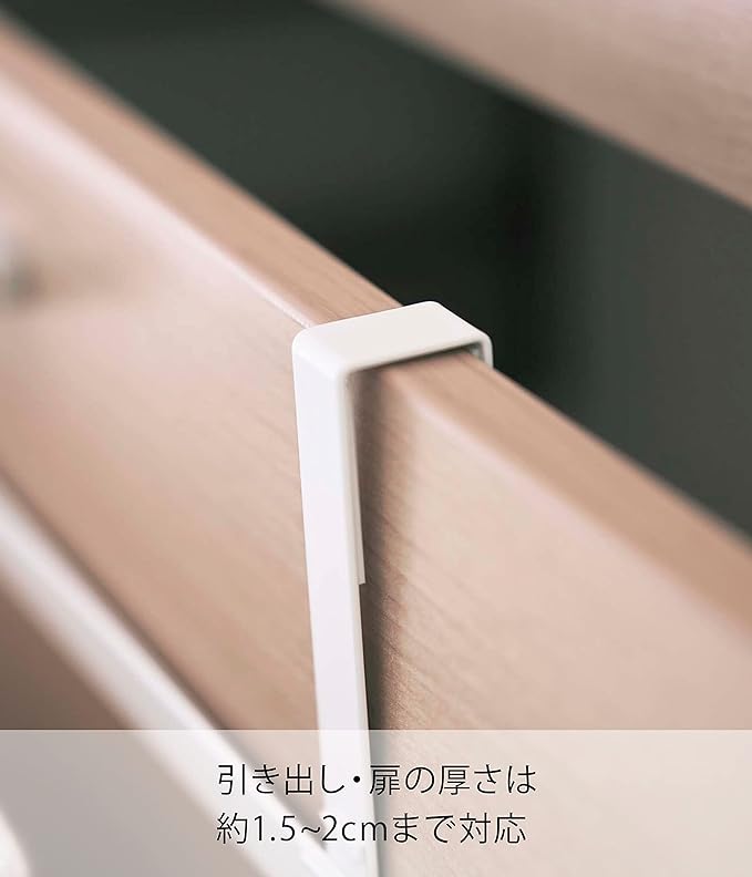 洗面下の引き出しや扉に引っ掛けるだけ。掃除の時や一時干しに便利なバスマットハンガー。可動式フックで取り付ける幅も自由自在。幅約47.5cmまでの大判のバスマットも掛けることができて便利。吊り下げ部分が長いので引き出しの取っ手を避けて設置できます。取り外せる可動式のフックで引っ掛け部分の横幅を選ばずに掛けることができます。バスマットも低位置に設置できて目立たず衛生的。引き出し・扉の厚さは約1.5~2cmまで対応。