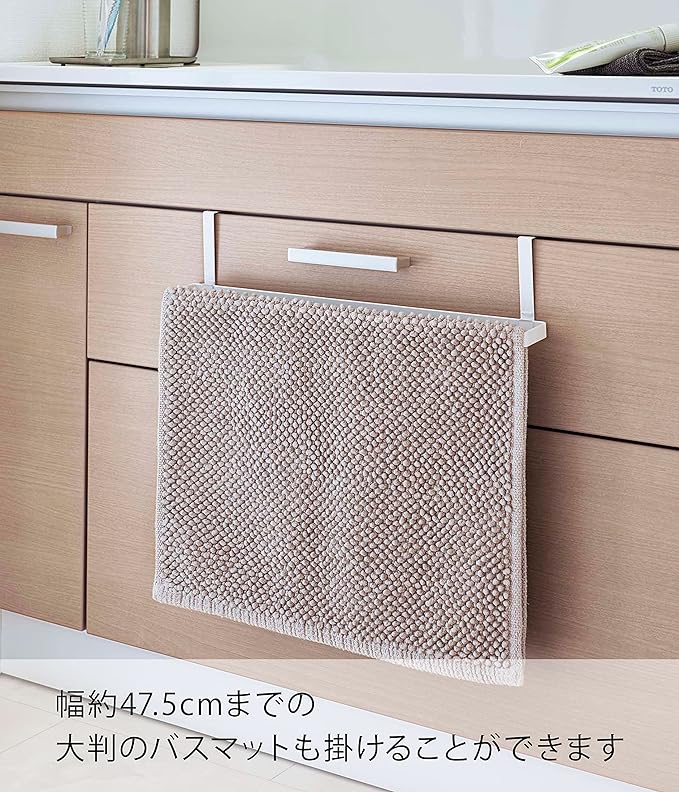 PLATE 洗面下 引っ掛け バスマット&タオルハンガー ホワイト 引き出し扉に引っ掛けるだけ 簡単取付