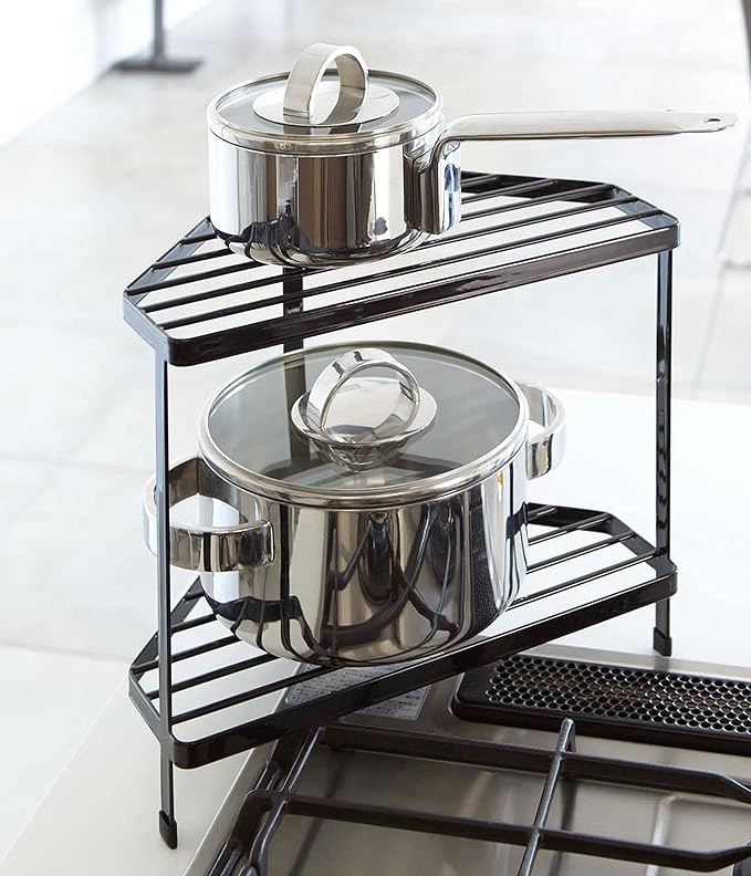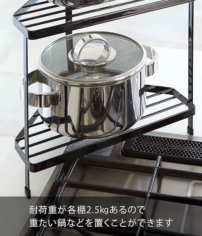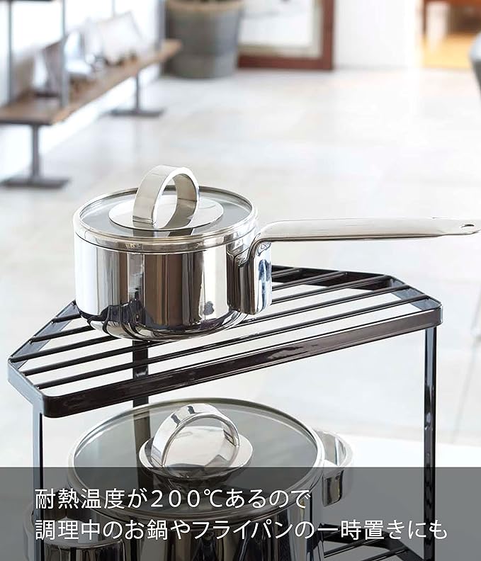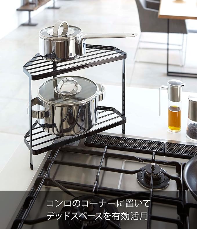 コンロのコーナーに置いて調理中の鍋や調味料などを置いておける便利なキッチンコーナラック。コンロ以外にもキッチンの収納棚としても便利です。