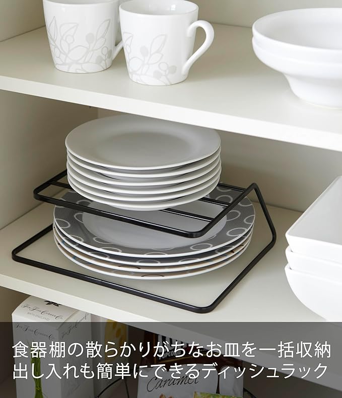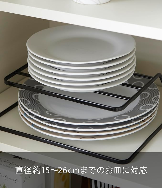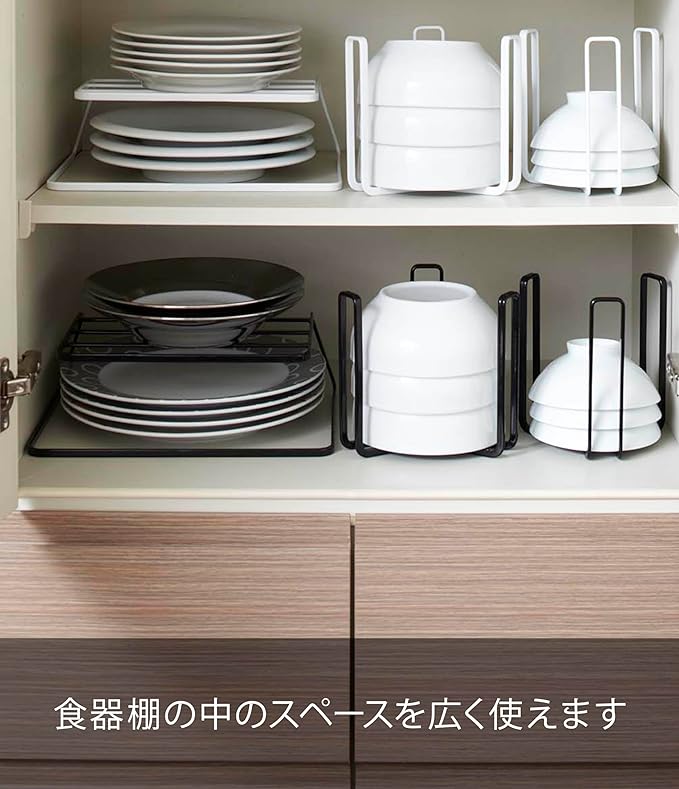 食器棚の散らかりがちなお皿を一括収納、出し入れ簡単。 下段は大きな重いお皿を置き、上段は小さくて軽量のお皿を置くとバランスよく収納できます。他のお皿に引っかかる事無くスムーズに出し入れ可能、食器棚のデッドスペースを有効に使えます。