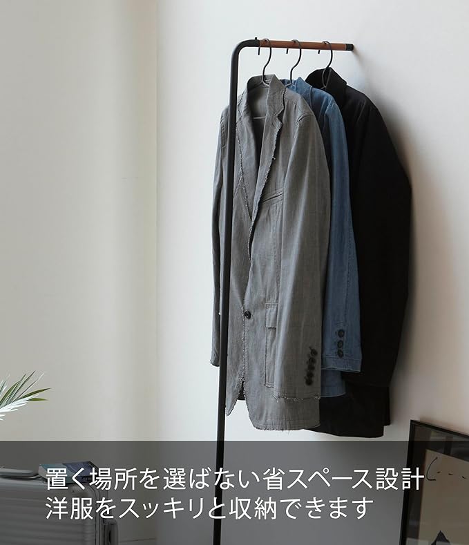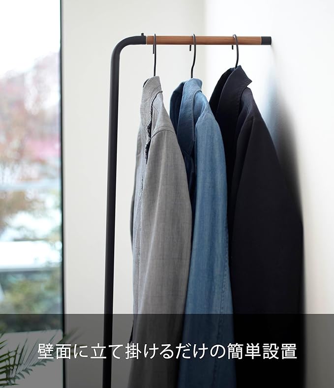 木目がやさしいシンプルなデザインの立て掛けコートハンガー。スチールと天然木の組み合わせが上品なコートハンガー。省スペース設計なので置く場所を選びません。