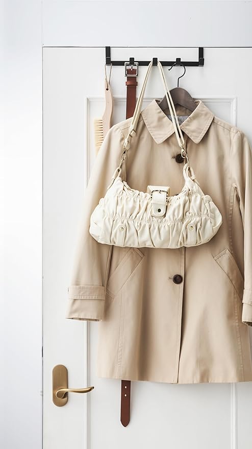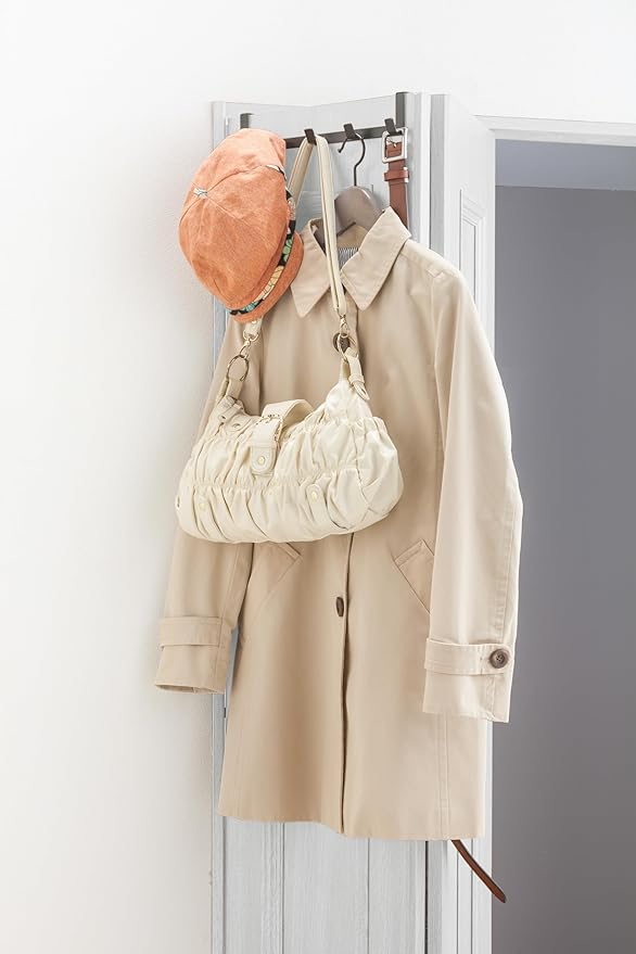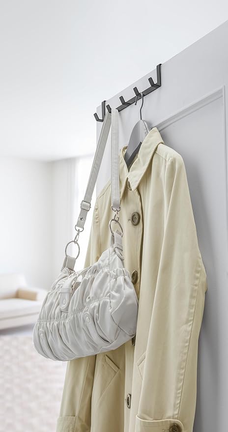 デッドスペースを有効活用してバッグや帽子などを一括収納 最大5個掛けられるワイドドアハンガーです。上着をサッと掛けられ便利。横長タイプで省スペース型のドアハンガー。帽子や上着など、お出かけ時にさっと手に取れる横型ドアハンガーです。