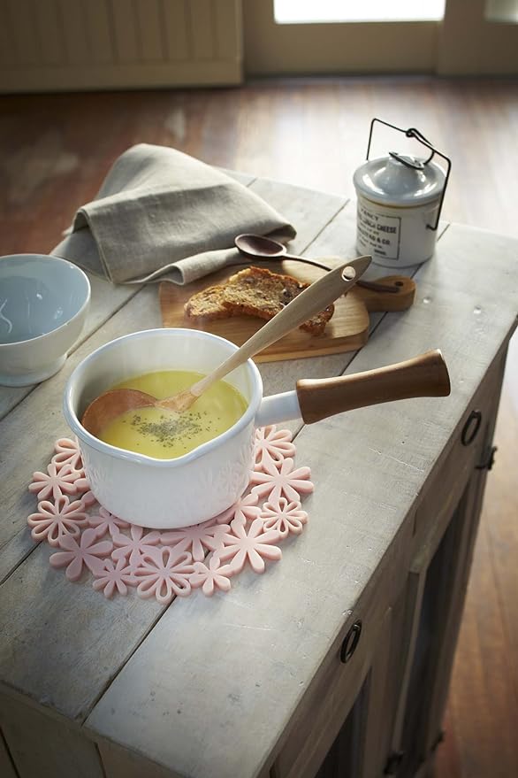フラワーのモチーフが可愛いなべ敷きです。ブーケのように華やかな花柄がキッチンを可愛く彩ります。なべやティーポットの一時置きに便利です。