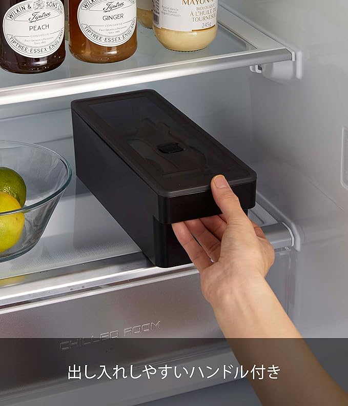 冷蔵庫の奥行きを無駄なく有効活用。ハンドル付きで出し入れしやすい、奥まで使える密閉バルブ付きフードコンテナ。冷蔵庫内を整理しやすい奥行ワイド・幅スリム設計。冷蔵庫の奥行きを無駄なく使い、スリムなので場所もとりません。スタッキング可能。約1500mlの大容量なので作り置き保存に最適です。汁漏れしにくいパッキン付き。バルブをワンプッシュで簡単密閉。パーツはすべて分解して洗うことができます。ハンドル付きで出し入れしやすいバルブ付き密閉フードコンテナシリーズ。食洗器・電子レンジ・冷凍に対応。
