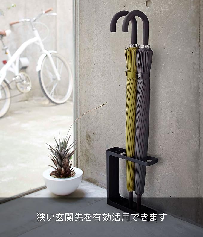 奥行わずか6.5cmのスリムで場所を取らない、アンブレラスタンドです。背丈が低く圧迫感がないので、狭い場所でもスッキリ置けて、上質な玄関空間の演出にピッタリのアイテムです。