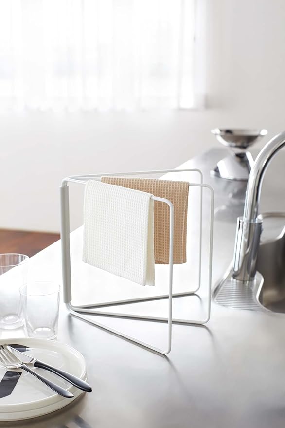 簡単に広げてスリムに折り畳める3枚掛けの布巾ハンガーです。折り畳めば幅が2cmとスリムになるので、収納場所にも困りません。