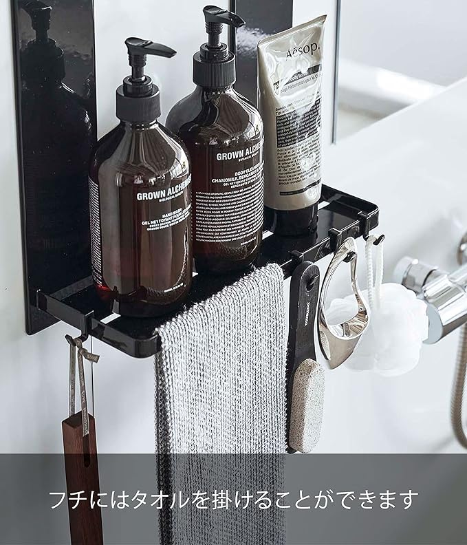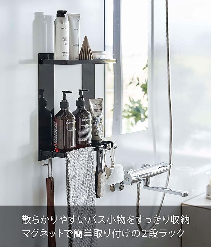 tower マグネット バスルームラック 2段 ブラック 浴室 ラック お風呂ラック 浴室収納 フック付き