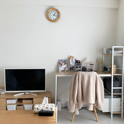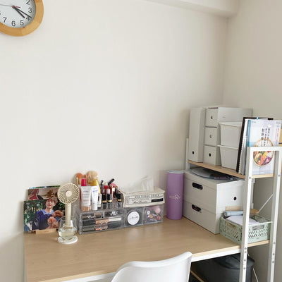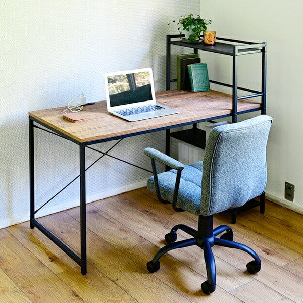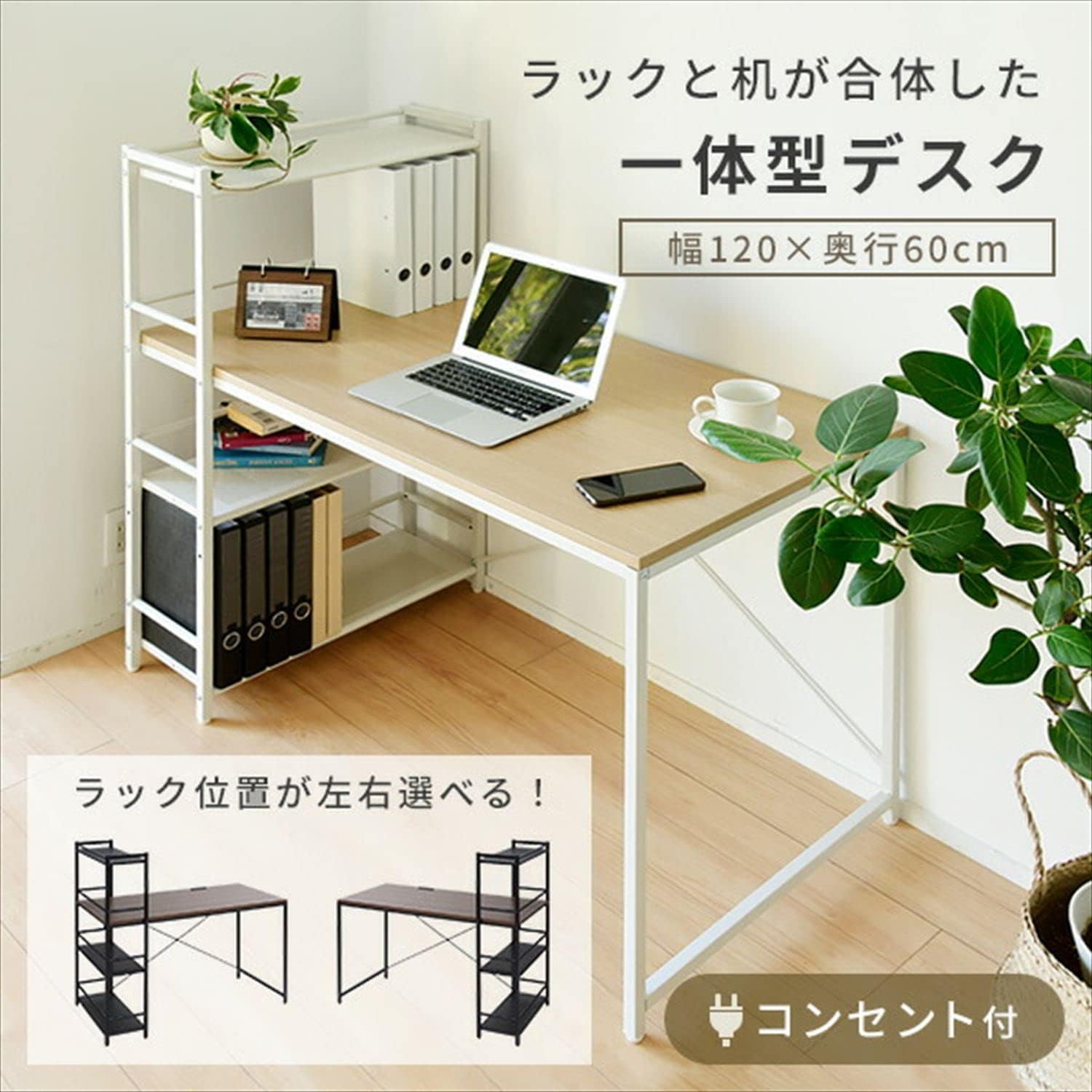 ラックと机が合体した一体型デスクです。ラックの位置は、お部屋のレイアウトに合わせて左右選択可能です。
